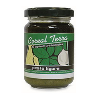 Ingredienti: Basilico* 30%, olio extravergine di oliva*, anacardi*, sale marino, pinoli*, pecorino* (latte di pecora, caglio, sale), parmigiano reggiano* 3% ( latte vaccino, caglio, sale), aglio* 1%. (*da agricoltura biologica)